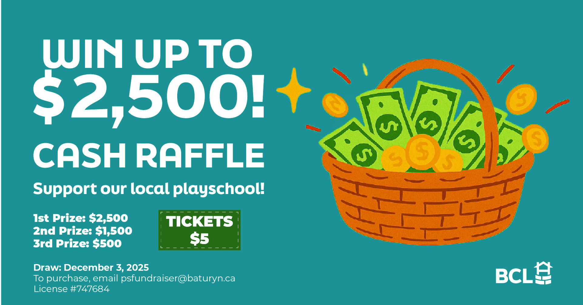 You could win up to $2,500 cash on December 3rd, if you purchase tickets to our Annual raffle. Tickets are just $5 each and proceeds will go towards our playschool program.